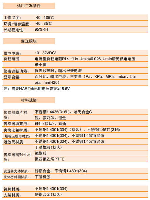 特點: 無需校準(zhǔn)器,縮短安裝運行時間。 量程可調(diào),工程單元可選,滿足特定要求應(yīng)用。 高精度:在特殊工況下確保高精度控制和低成本。 溫度補(bǔ)償:提高設(shè)備在不同環(huán)境下的精確度 HART通信:提供數(shù)字智能化方案