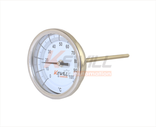Bimetallic thermometer是一種測(cè)量中低溫度的現(xiàn)場(chǎng)檢測(cè)儀表??梢灾苯訙y(cè)量各種液體和氣體的溫度。雙金屬溫度計(jì)主要的元件是兩種金屬片疊壓在一起組成的雙金屬片,利用兩種不同金屬在溫度改變時(shí)膨脹程度不同的原理工作的。繞制成螺旋狀,溫度變化時(shí),螺旋狀的雙金屬片帶動(dòng)指針轉(zhuǎn)動(dòng),儀表便會(huì)顯示出相應(yīng)的溫度值。
