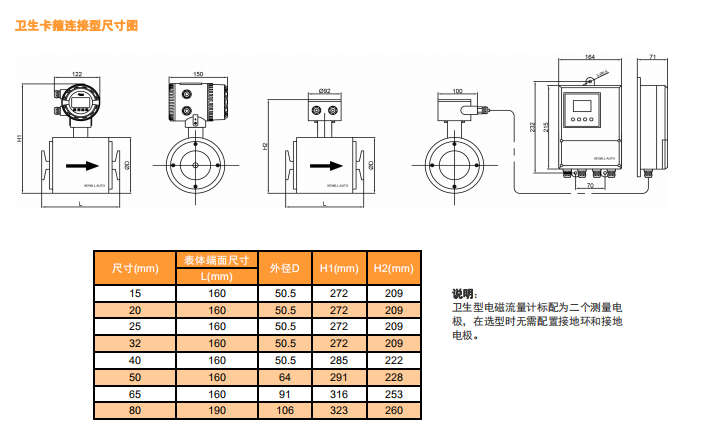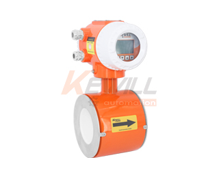 測量流量時,導(dǎo)電性液體以速度V流過垂直于流量方向的磁場,導(dǎo)電性液體的流動感應(yīng)出一個與平均流速成正比的電壓,其感應(yīng)電壓信號通過二個或二個以上與液體直接接觸的感應(yīng)電極檢出,并通過電纜送至轉(zhuǎn)換器通過其智能化處理,實現(xiàn)流體瞬時流量、積累流量的顯示及流量數(shù)據(jù)與控制系統(tǒng)之間的通訊。測量管內(nèi)無活動及阻流部件,因此幾乎沒有壓力損失,并且有很高的可靠性。